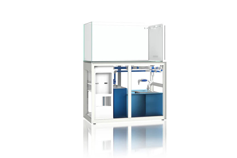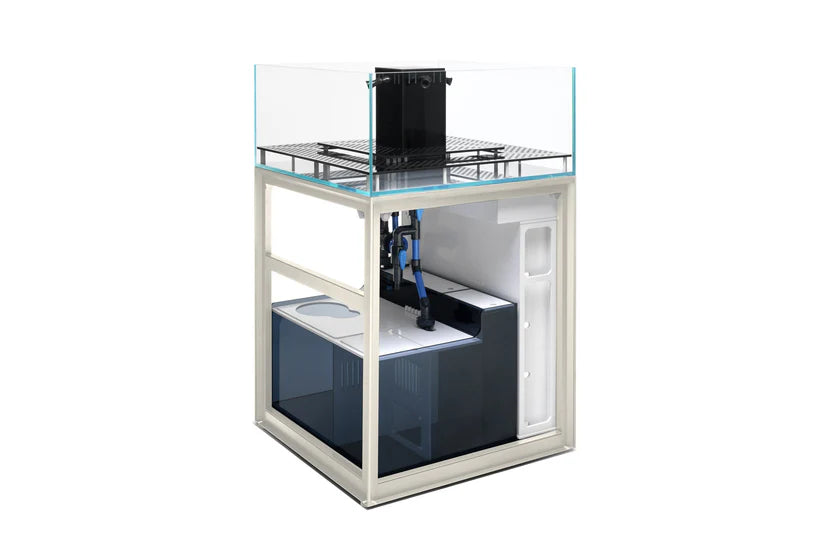 Aluminum-framed, fully removable, magnetic doors for easy access during maintenance or equipment installation. The R90 and larger models include convenient pull-out drawers, controller boxes and space for personalized setup, optimal wire management and storage. Made to be modular and customizable according to needs, each stand comes fully assembled with the sump pre-installed.