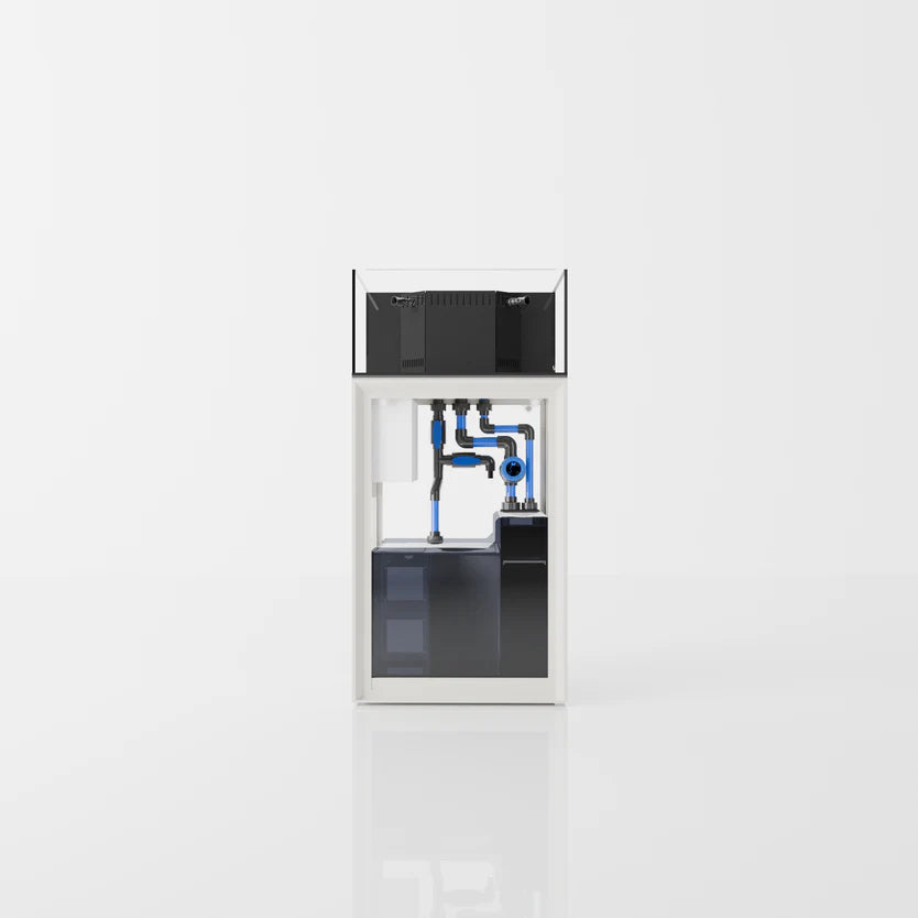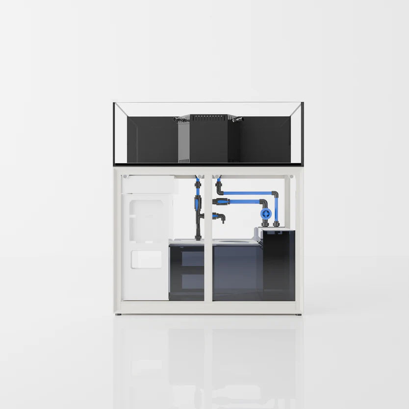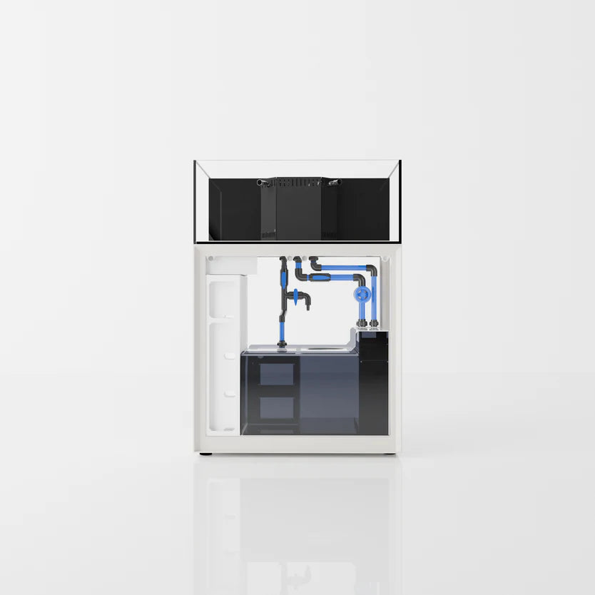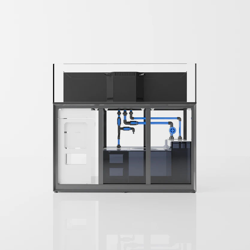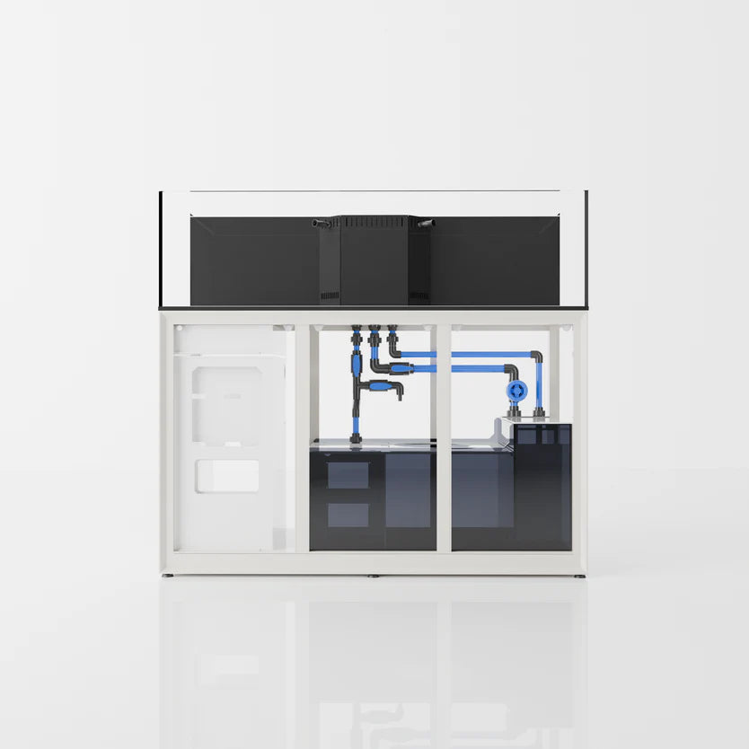 Enjoy signature 45° mitered edges, high-clarity glass and more. Crafted with thicker glass and utilizing black silicone, our R line of rimless aquariums intend to highlight the colors of corals and livestock while minimizing the visibility of coraline. Each tank features a sleek white bottom, allowing for bare-bottom setups that disguise equipment within the integrated sump below.