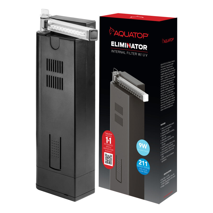 AQUATOP’S IF-UV Series of Internal Filters with UV are easy to install and maintain. These innovative and flexible filters help to eliminate unsightly algae and control unwanted algae blooms with the integrated UV system. In addition to the UV, each unit is equipped with an easy-change replaceable pre-filter sponge and activated carbon for Mechanical and Chemical filtration. The UV bulb assembly includes a power switch allowing it to run independently from the filter pump. The IF-UV Series aids in the health of your aquatic life by eradicating harmful free-floating micro-organisms in fresh or saltwater aquariums, and the bottom mounted pump makes it a perfect choice for sump or turtle tank applications.
