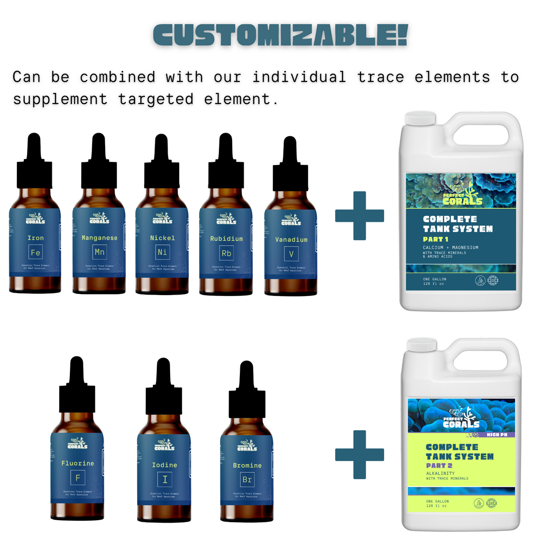 Our Complete Tank System is a simple and effective 2-part tank care solution designed to support vibrant coral growth, strong skeletal development, and overall tank health.