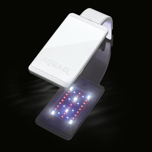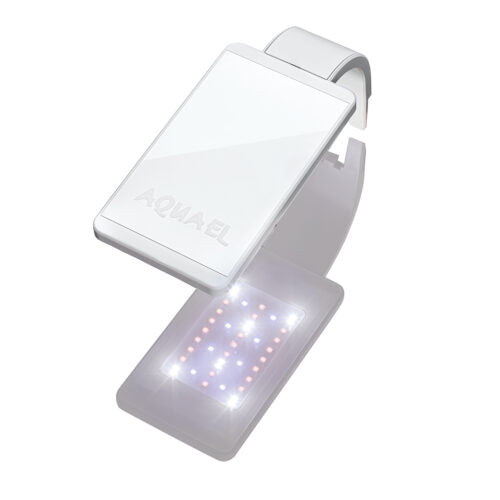 LEDDY SMART DAY&NIGHT is designed for tanks with a capacity of 10 to 50 l and a height not exceeding 35 cm. It uses modern LED technology hidden in a flat (only 1 cm thick), elegant lampshade. Installation of the lamp is very simple – just slide its arm directly onto the edge of the aquarium glass. It fits tanks made of glass up to 6 mm thick.