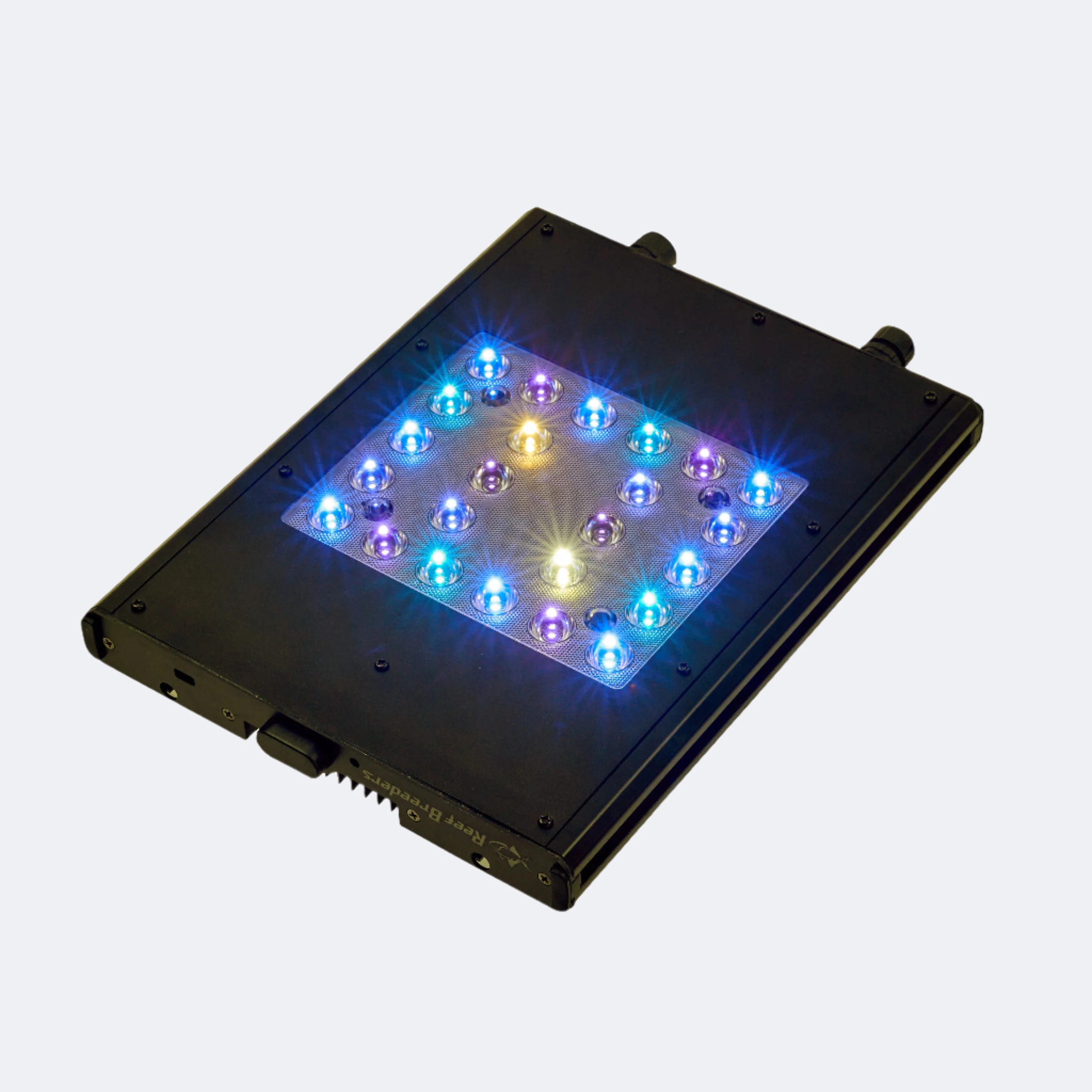 The ReefBreeders app provides cloud based WiFi access, Bluetooth allows quick local adjustments, and the optional Manual Controller offers direct on-device control with smooth sunrise and sunset transitions.
